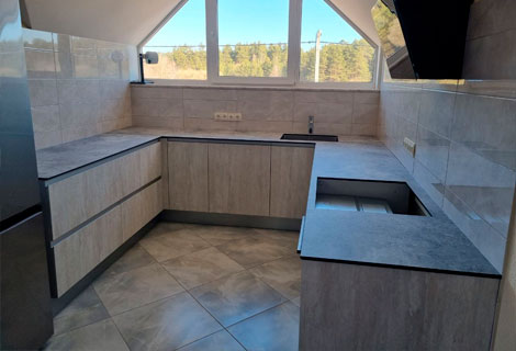 Что касается цены. Стоимость столешницы из HPL композита на 20-30 % дешевле столешниц из акрилового камня и керамогранита и в 2-2,5 раз дешевле столешниц из кварцевого агломерата.